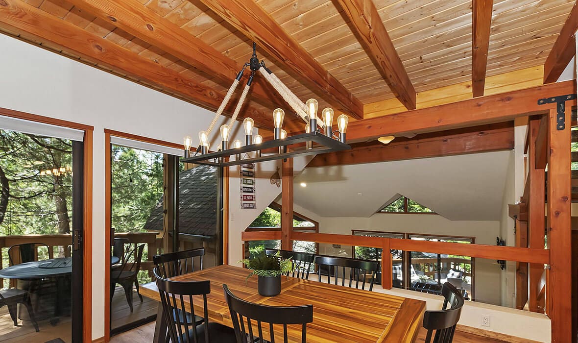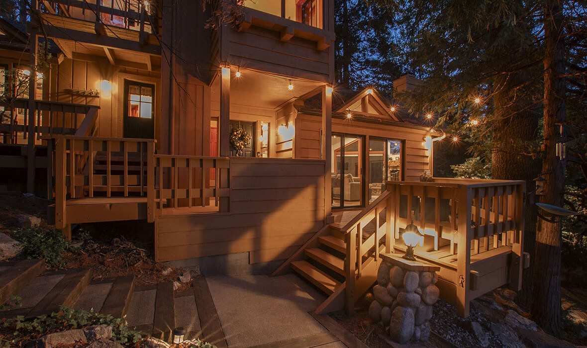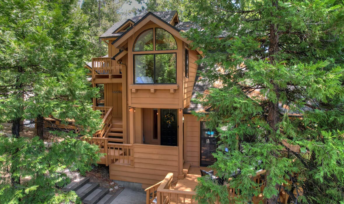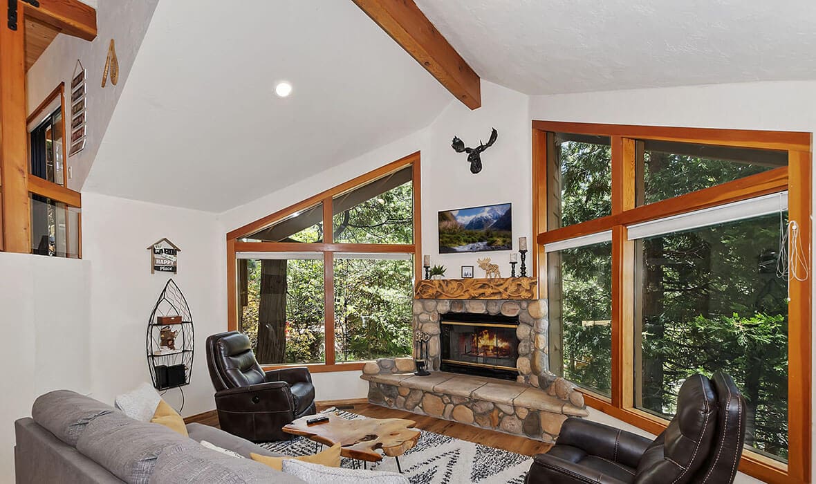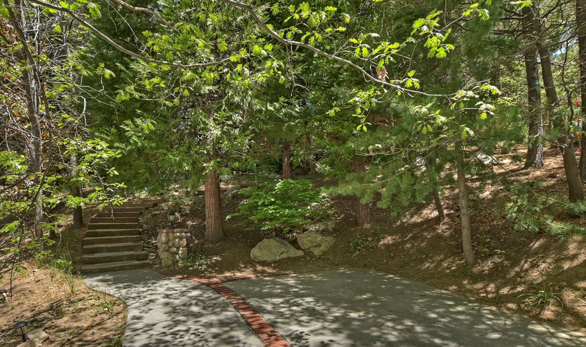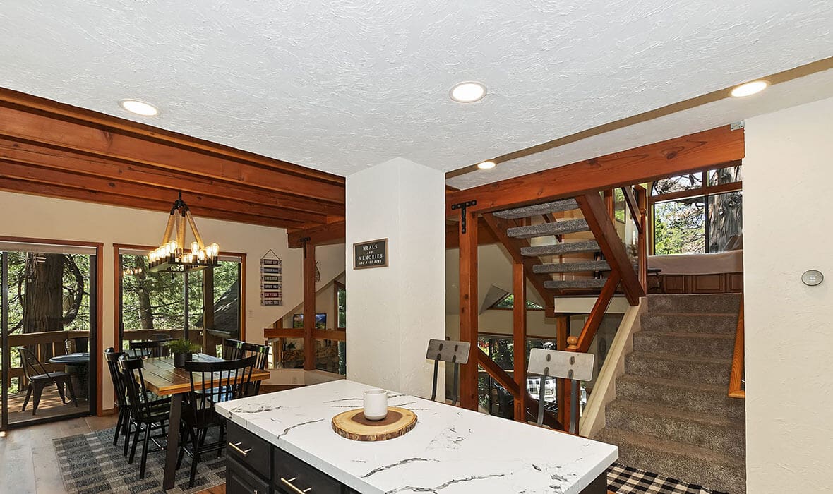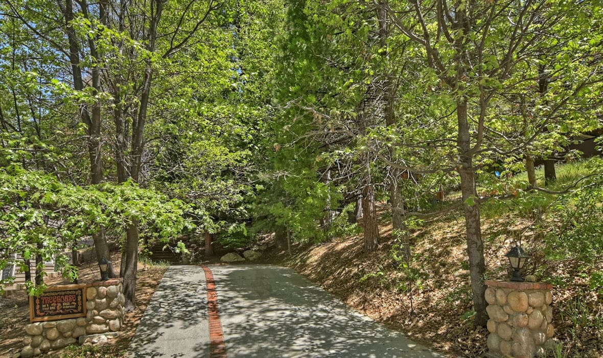 Architectural Stunner with a Rock-Solid Setting. This property gets an A+ for being architecturally interesting and unique. Seriously, check out this forested property adorned with one-of-a-kind natural boulders and generational-sized trees! Adjacent to undeveloped and forested land, it creates a private, nature-driven setting. This split-level home features an open-concept design and an updated kitchen where no tact or taste went to waste. The beautifully updated flooring adds to the home’s modern charm. Every nook and cranny is meticulously crafted, with all rooms boasting vaulted ceilings, even the bathrooms. Each bedroom features a private deck, creating retreat-like oases. Enjoy entertaining on the wonderful deck off the dining room, perfect for cozy conversation and relaxation. Step outside to unwind in the outdoor Jacuzzi or take a stroll along the meandering path that provides a romantic approach to the home and is studded with dozen upon dozen of flowering bulbs and landscaped trees. Situated on an easily accessible street, it offers easy access to Paradise Cove at Private Lake Arrowhead. This home is being offered beautifully furnished and turn-key, making it a perfect retreat-like escape for anyone seeking serenity and peace. Experience the tranquility and charm of this extraordinary property – your mountain sanctuary awaits.