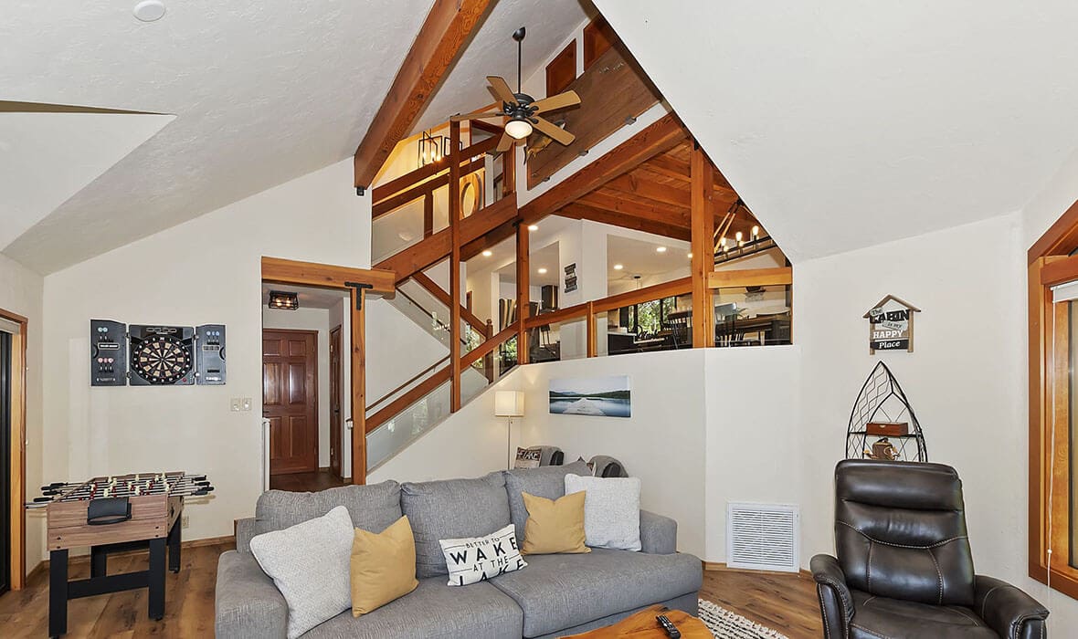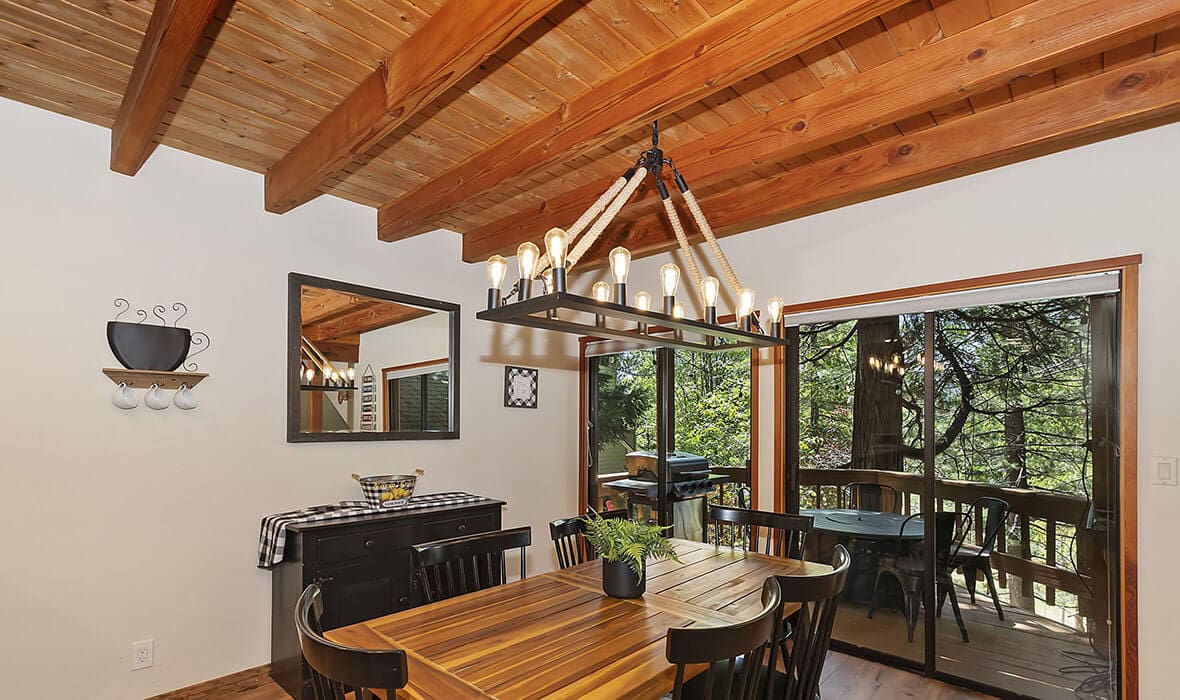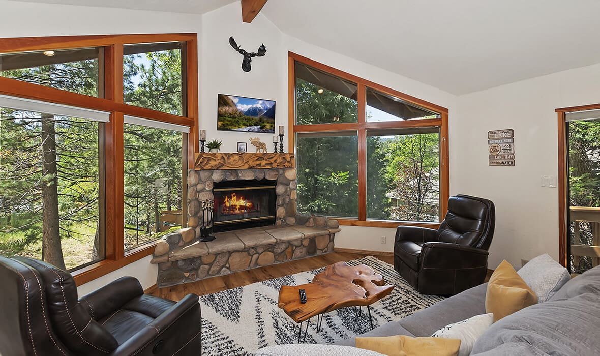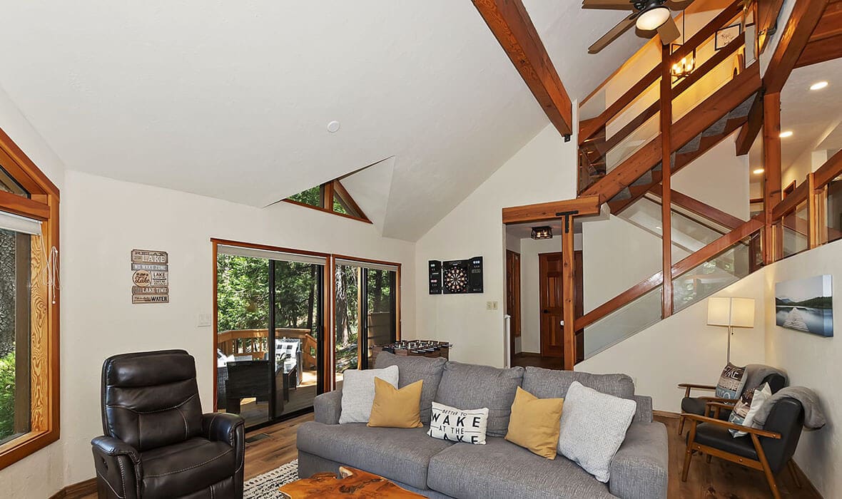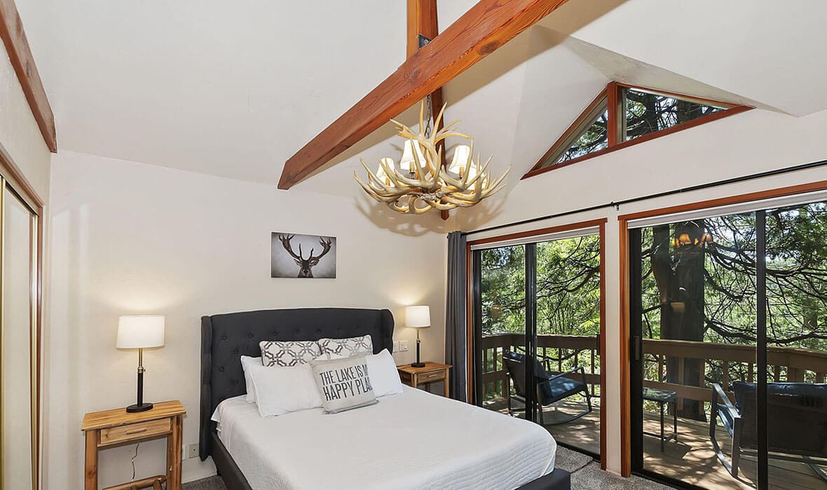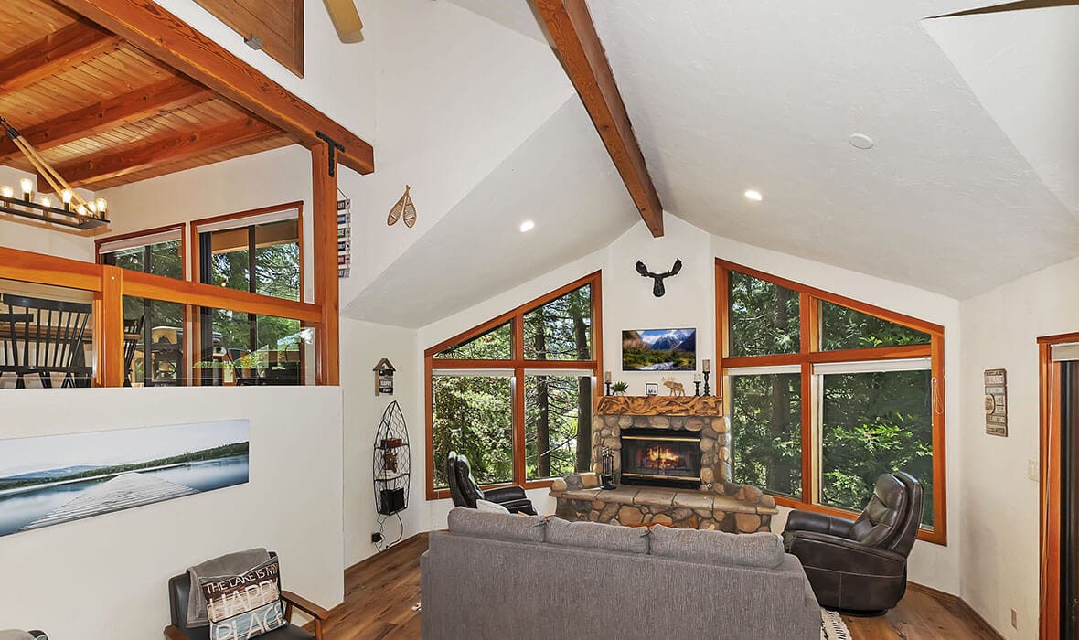 Architectural Stunner with a Rock-Solid Setting. This property gets an A+ for being architecturally interesting and unique. Seriously, check out this forested property adorned with one-of-a-kind natural boulders and generational-sized trees! Adjacent to undeveloped and forested land, it creates a private, nature-driven setting. This split-level home features an open-concept design and an updated kitchen where no tact or taste went to waste. The beautifully updated flooring adds to the home’s modern charm. Every nook and cranny is meticulously crafted, with all rooms boasting vaulted ceilings, even the bathrooms. Each bedroom features a private deck, creating retreat-like oases. Enjoy entertaining on the wonderful deck off the dining room, perfect for cozy conversation and relaxation. Step outside to unwind in the outdoor Jacuzzi or take a stroll along the meandering path that provides a romantic approach to the home and is studded with dozen upon dozen of flowering bulbs and landscaped trees. Situated on an easily accessible street, it offers easy access to Paradise Cove at Private Lake Arrowhead. This home is being offered beautifully furnished and turn-key, making it a perfect retreat-like escape for anyone seeking serenity and peace. Experience the tranquility and charm of this extraordinary property – your mountain sanctuary awaits.