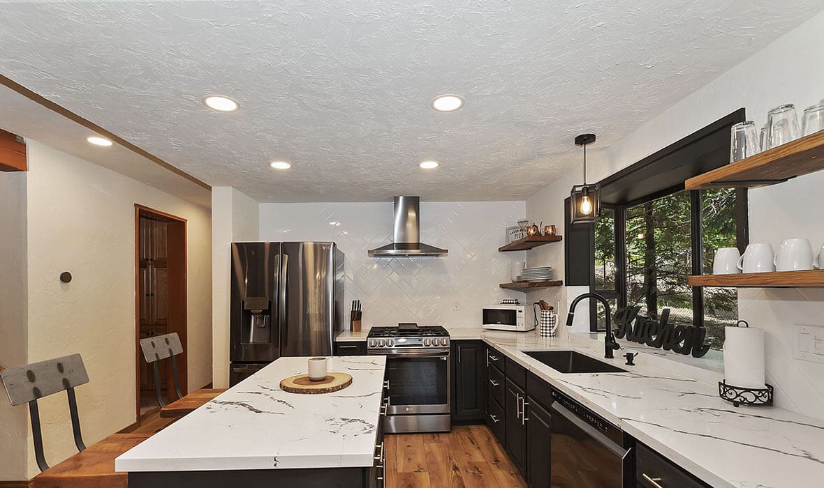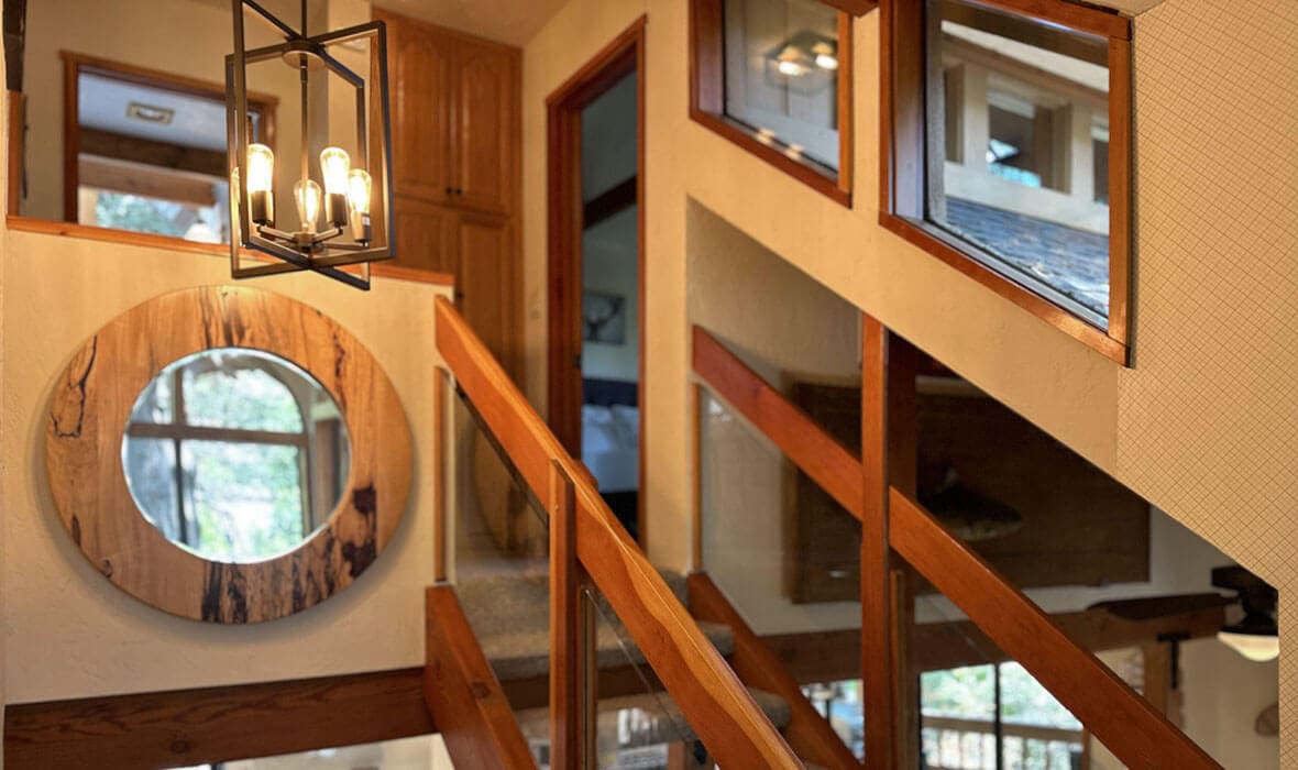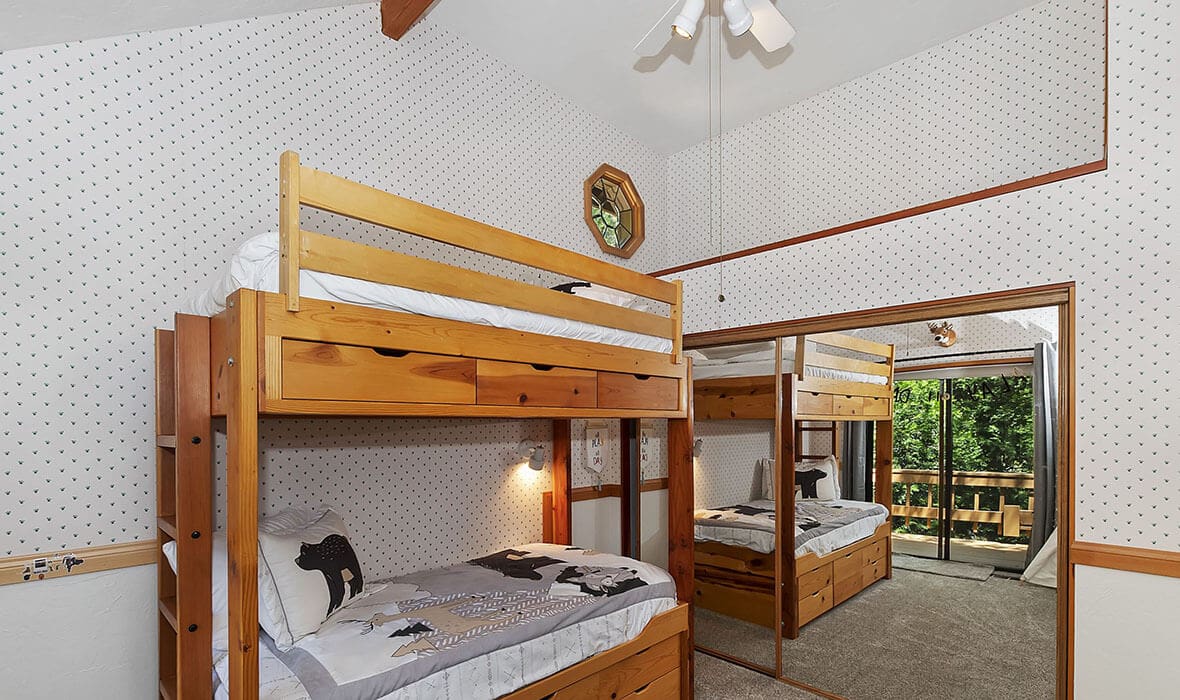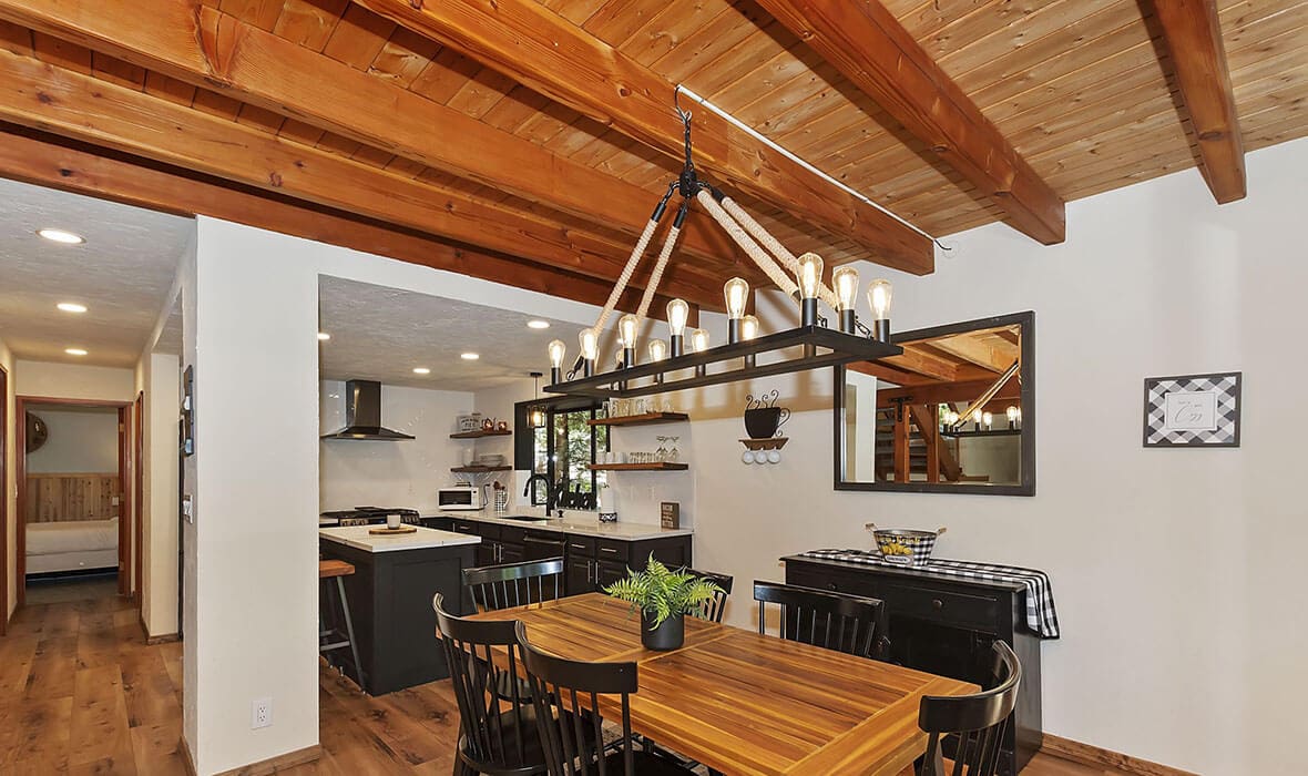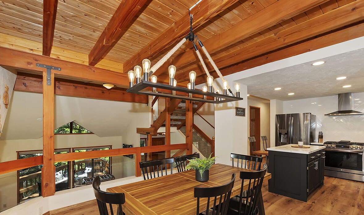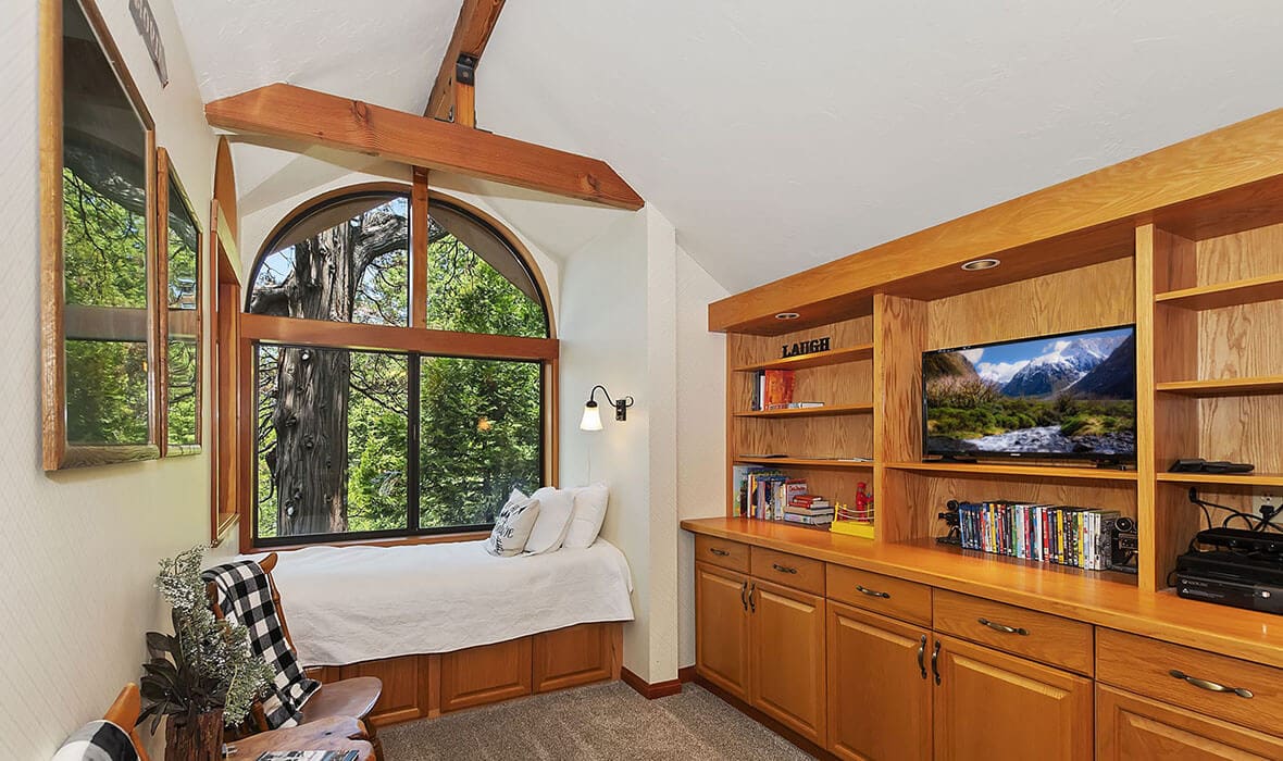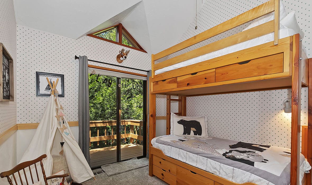 Architectural Stunner with a Rock-Solid Setting. This property gets an A+ for being architecturally interesting and unique. Seriously, check out this forested property adorned with one-of-a-kind natural boulders and generational-sized trees! Adjacent to undeveloped and forested land, it creates a private, nature-driven setting. This split-level home features an open-concept design and an updated kitchen where no tact or taste went to waste. The beautifully updated flooring adds to the home’s modern charm. Every nook and cranny is meticulously crafted, with all rooms boasting vaulted ceilings, even the bathrooms. Each bedroom features a private deck, creating retreat-like oases. Enjoy entertaining on the wonderful deck off the dining room, perfect for cozy conversation and relaxation. Step outside to unwind in the outdoor Jacuzzi or take a stroll along the meandering path that provides a romantic approach to the home and is studded with dozen upon dozen of flowering bulbs and landscaped trees. Situated on an easily accessible street, it offers easy access to Paradise Cove at Private Lake Arrowhead. This home is being offered beautifully furnished and turn-key, making it a perfect retreat-like escape for anyone seeking serenity and peace. Experience the tranquility and charm of this extraordinary property – your mountain sanctuary awaits.