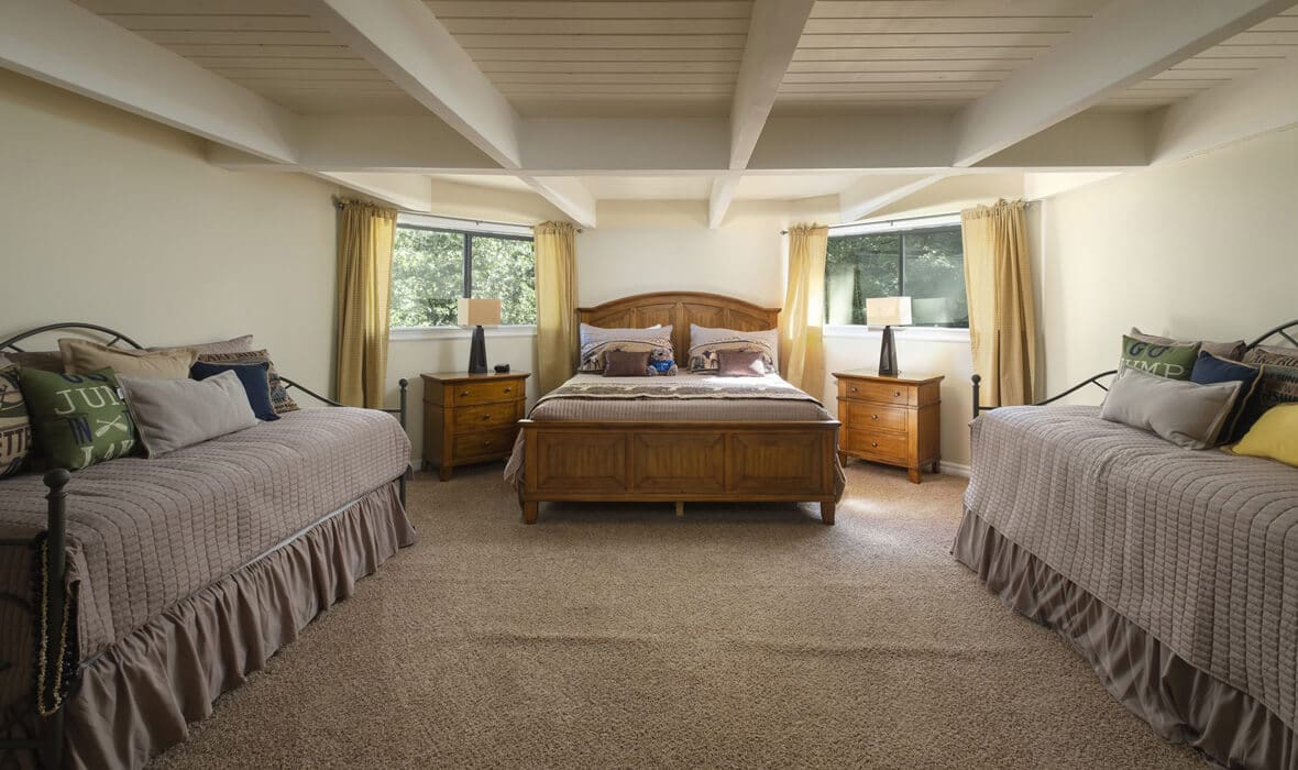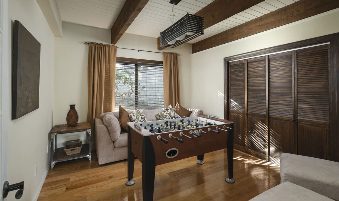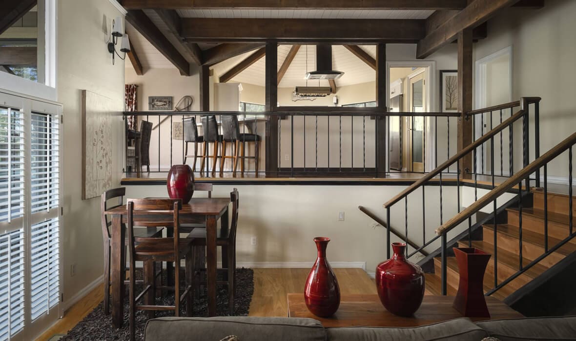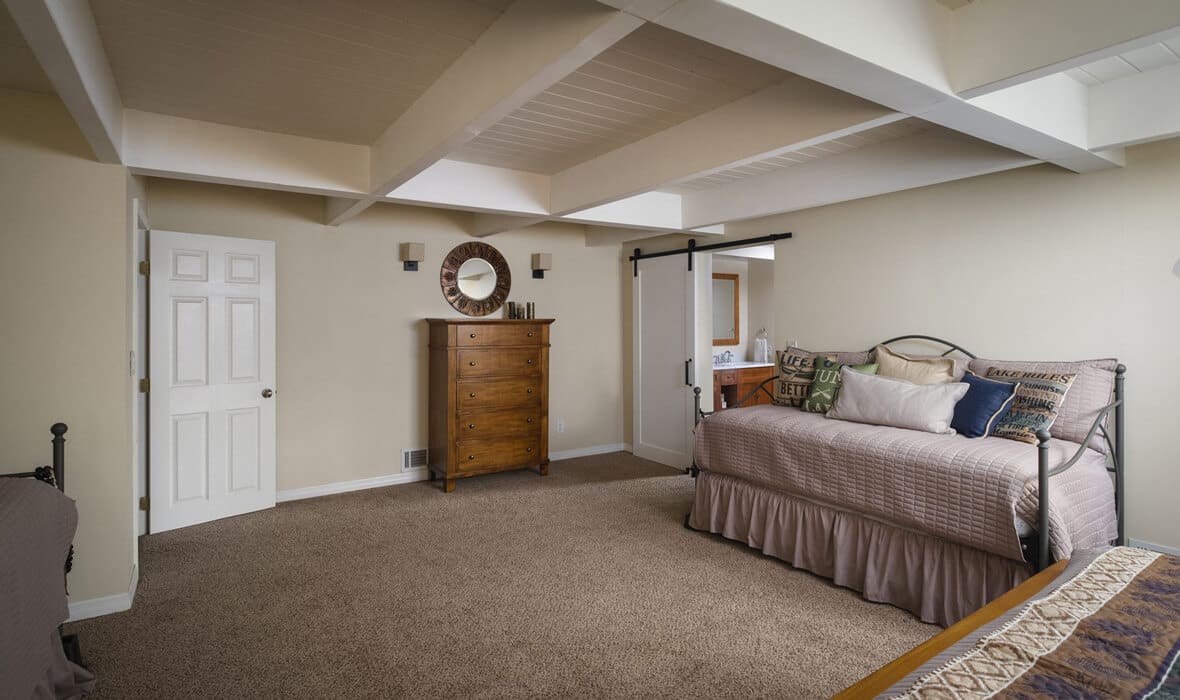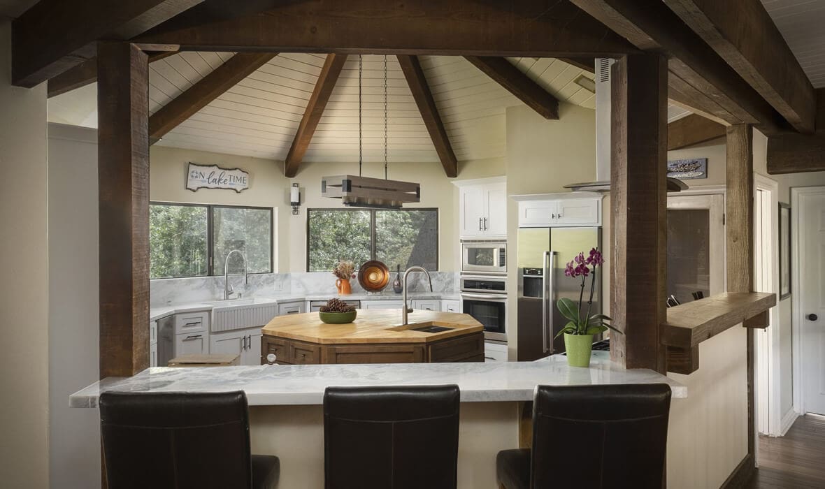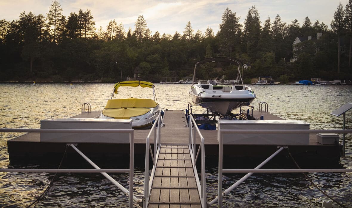 First Tier Dream Retreat in the gated and lakeside community of North Shore Estates. This craftsman-style lake house offers modern luxury in a picturesque locale. A tremendous Value in this Coveted Community! Just a short stroll to your half double dock located at the top of Winter Harbor (available for additional purchase). The dock is in the perfect location to watch the 4th of July fireworks. The heart of the home is the newly remodeled kitchen with a stunning octagonal butcher block island. Stainless steel appliances and quartzite countertops grace the kitchen, while (engineered) hardwood flooring adds sophistication throughout. The charming residence features three guest suites, one with a separate walk-in shower and spa tub, plus a convenient office or fourth bedroom. The master suite is a true oasis with a private viewing deck and a spacious bath boasting a walk-in shower and clawfoot tub. The beamed and vaulted ceilings pair with extensive use of windows to capture mountain wildlife and tree views. Plantation shutters, air conditioning, and a full house generator provide comfort and convenience. For cozy evenings, gather around the massive wall-to-wall, floor-to-ceiling fireplace with its stunning log-style mantle in the sunken living room. Ample parking ensures you, your guests and your boat have space out of the way. Don’t miss the opportunity to make this lakeside retreat in sought after North Shore Estates your own. Contact us now to discover the serenity of life in this knitted community. Your dream lake house awaits in Lake Arrowhead, CA.