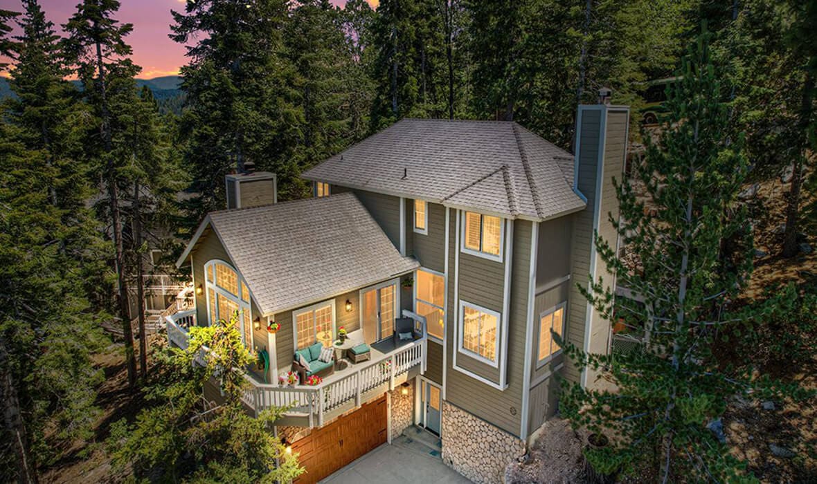 Calling All Adventurist! The vibe is on point at this rocky retreat! To start, it has a 5 foot waterfall that compliments the terraced oasis perfectly for summer siestas. An awesome and airy feel with an open and free flowing floor plan. Dual living spaces, vaulted ceilings, picture windows and a stellar view directed to a national forest ridgeline & tree tops. A clean choice of upgrade materials gives this home a pass to relax. It has updated carpet, paint, stainless appliances, countertops, engineered hardwood hickory flooring. The main living space and kitchen share well with a wrap-around deck, vaulted wood ceilings, river rock fireplace and custom wood mantel. The master suite will stop you in your socks because you won’t be able to leave. A giant walk in shower with artistic ceramic wood tiles, heated flooring, dual sinks, jet tub, a private deck overlooking the stellar yard. Bragging rights are fully achieved via a massive boulder waterfall & pond, custom terraced yard with hot tub, outdoor firepit, multiple seating areas…and yes it is fenced for the furry friends too! To top things off, plantation shutters, dual access with room to park your adventure vehicle, boat or friends, a high ceiling-direct access 2 car + garage, sprinkler system, snow thrower, leaf blower, portable a/c unit, tastefully appointed furnishings AND full lake rights! ALL of this with quick and easy access to the mountain dirt for hiking and biking galore! A tree top treat, if you will. Get your fix with all the tricks. Aggressively priced for buyers who are ready to tango.