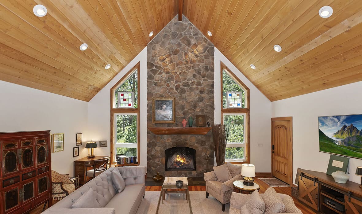 This Single Story Gem is the Perfect Lake Arrowhead Tale! Akin to a million dollar home it is tastefully completed from trusses to footings. Rather than on the page of a book – this dream is real and has quite the look! Beautifully cased windows span the entire wall framing the tranquil tree setting you can hardly take your gaze from. Stunning and warm hardwood floors throughout, vaulted rough-sawed ceilings, and a stone fireplace towers for an impressive focal point. A generous kitchen offers an oversized island, beautifully designed cabinets, stone counter tops and stainless steel appliances. All too natural for a morning tea, an afternoon spritz or romantic gathering. The temp is always right with radiant heating and a splitter in the primary suite perfected with a walk-in shower, walk-in closet, and dual vanity! A wonderful decision for weekend affairs, relaxing retreats or primary living… even retirement should I dare speak! Two guestrooms and guest bath reach through one wing with a formal laundry and direct access attached garage, who are we kidding – so easy for groceries! In compliment of low maintenance siding the composite deck spans from end to end and is a wonderfully quiet setting for sunbathing and stargazing. All terraced in a coveted area showcasing the Lake Arrowhead Country Club and Golf Course for all the fun, all the games and social opportunity! A style to live in that will never grow tiring, but does offer the option for growing with an entire second level ready to improve should you wish to make this single story two! Don’t miss this shot, it is the perfect target for your now and your forever Lake Arrowhead Tale of Glory!