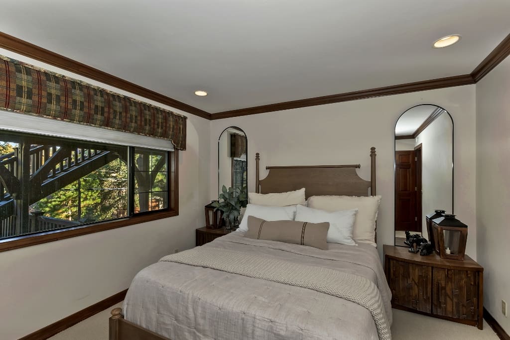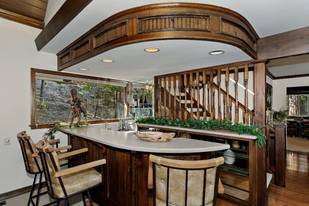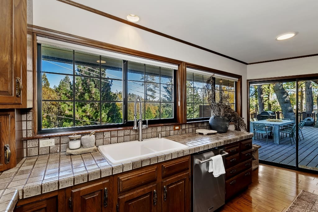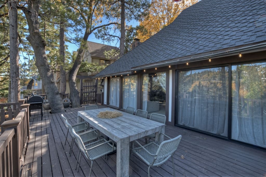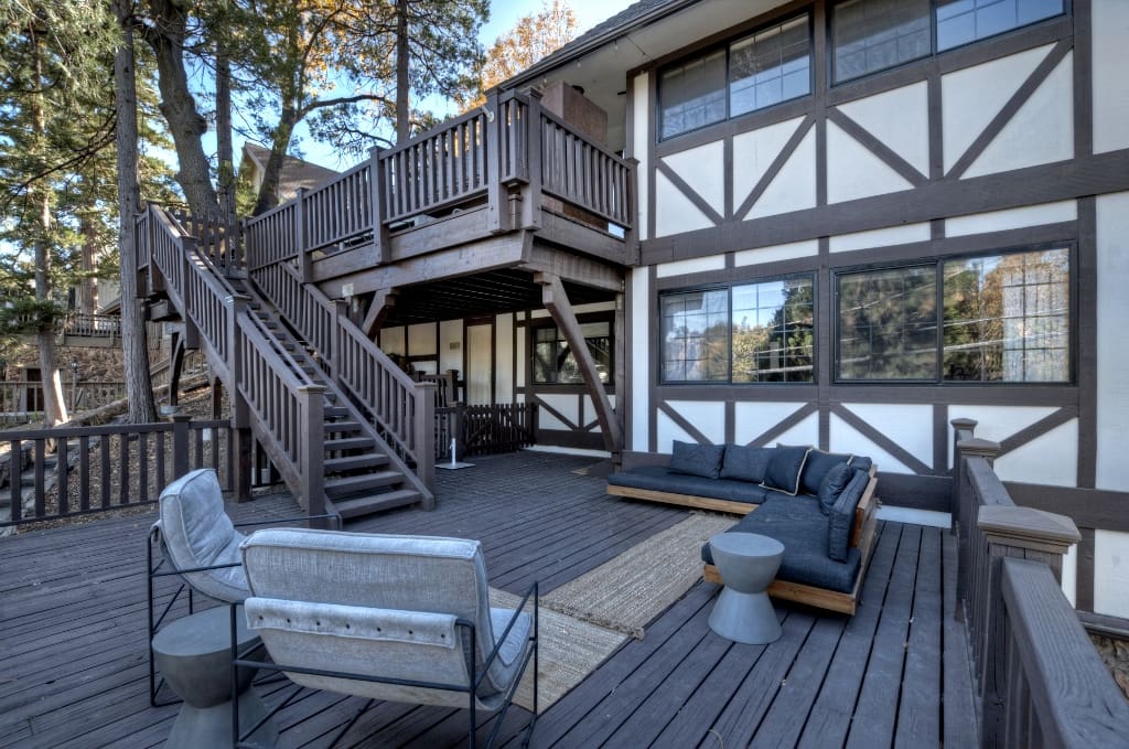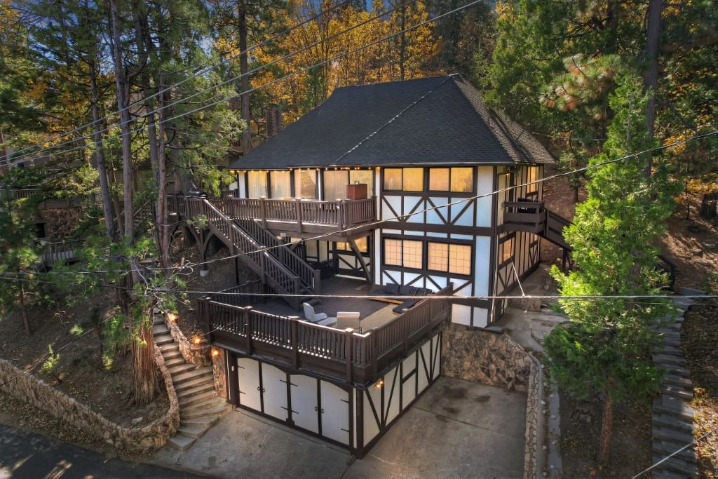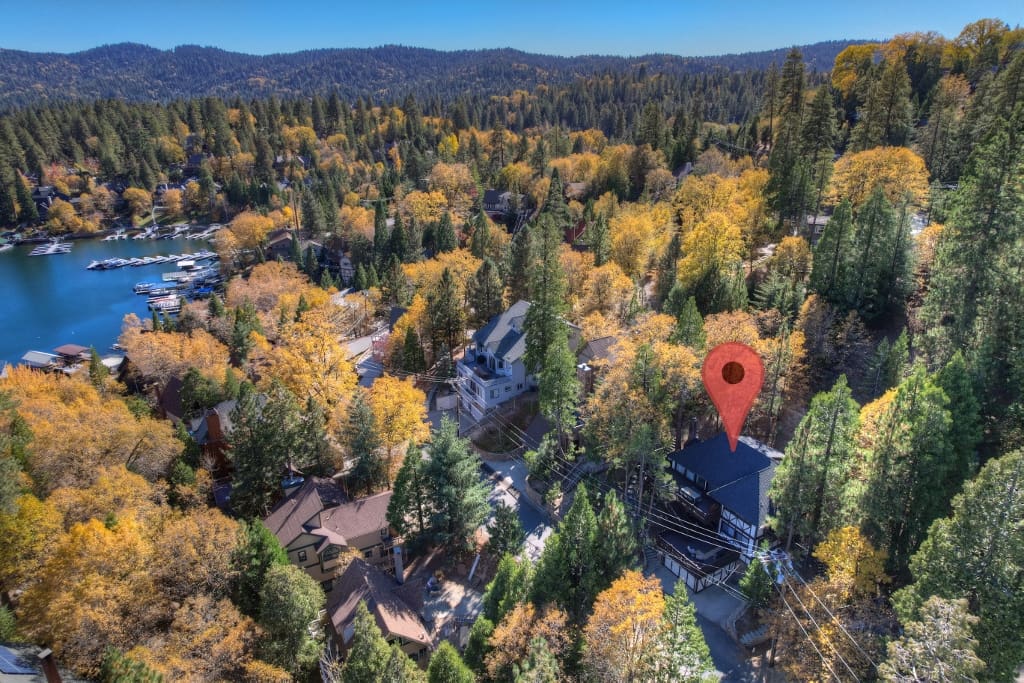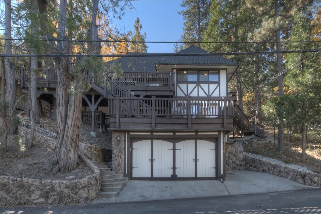 Welcome to Your Dream Lake House Retreat in the highly sought-after North Bay neighborhood of Lake Arrowhead! This charming home is positioned just across the street from Arrowhead Lake Association trail access, a great starting point for a hike on the lake and weekend get-away! It offers stunning winter lake views and outdoor spaces perfect for sunny summer days. Expansive decks invite you to relax and take in the year-round beauty of this gorgeous mountain town. Inside, experience the perfect blend of timeless charm and modern luxury. Original custom woodwork brings a warm, inviting character to every room, such as updated bathrooms and laundry featuring premium tile & glass, and custom fixtures throughout. Vaulted ceilings and exposed wood beams create a spacious yet cozy atmosphere, with walls of windows that frame serene mountain views. Evenings are perfect by the fireplace or at the full bar, while a separate lounge area offers a sophisticated space for media, card games, or a casual tasting night. The upstairs includes a spacious guest room with a large storage closet—ideal for future expansion or customization. The primary is tranquil and opens to the lower deck for an easy stay. Whether you’re looking for a cozy family retreat or a stunning space to entertain, this home strikes the ideal balance between rustic tradition and upscale comfort. Make your lakeside dream a reality! Don’t miss this chance to own a true Lake Arrowhead lakeside dream in one of the most desirable neighborhoods—schedule your viewing today!